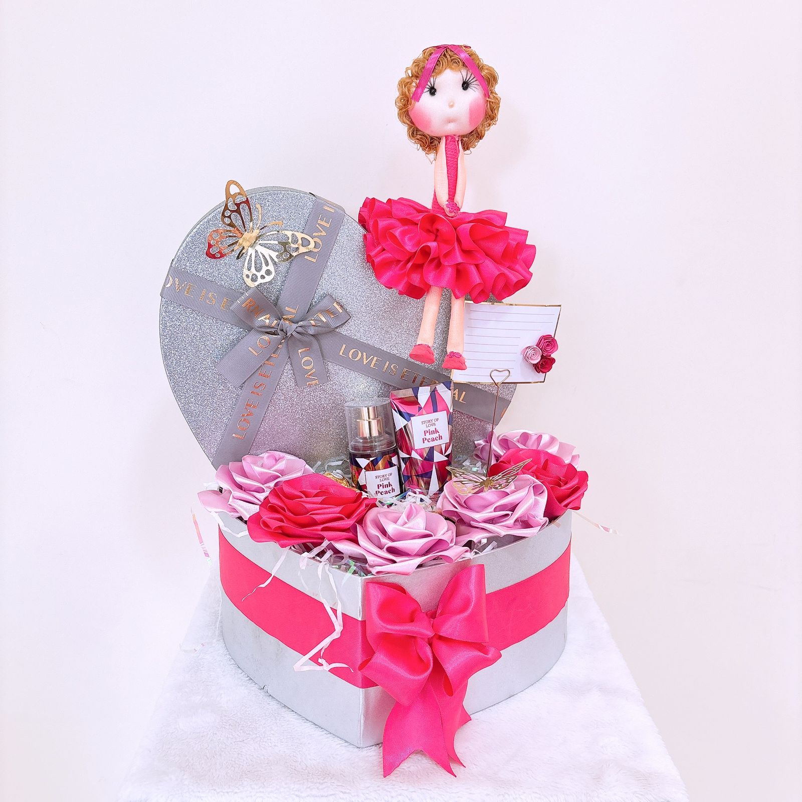 Caja de corazón y una muñequita cantidad
