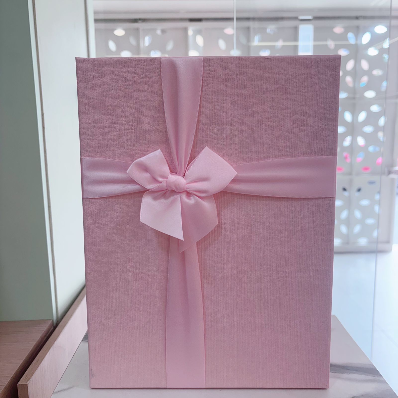 Caja rosada con cinta rosa grande