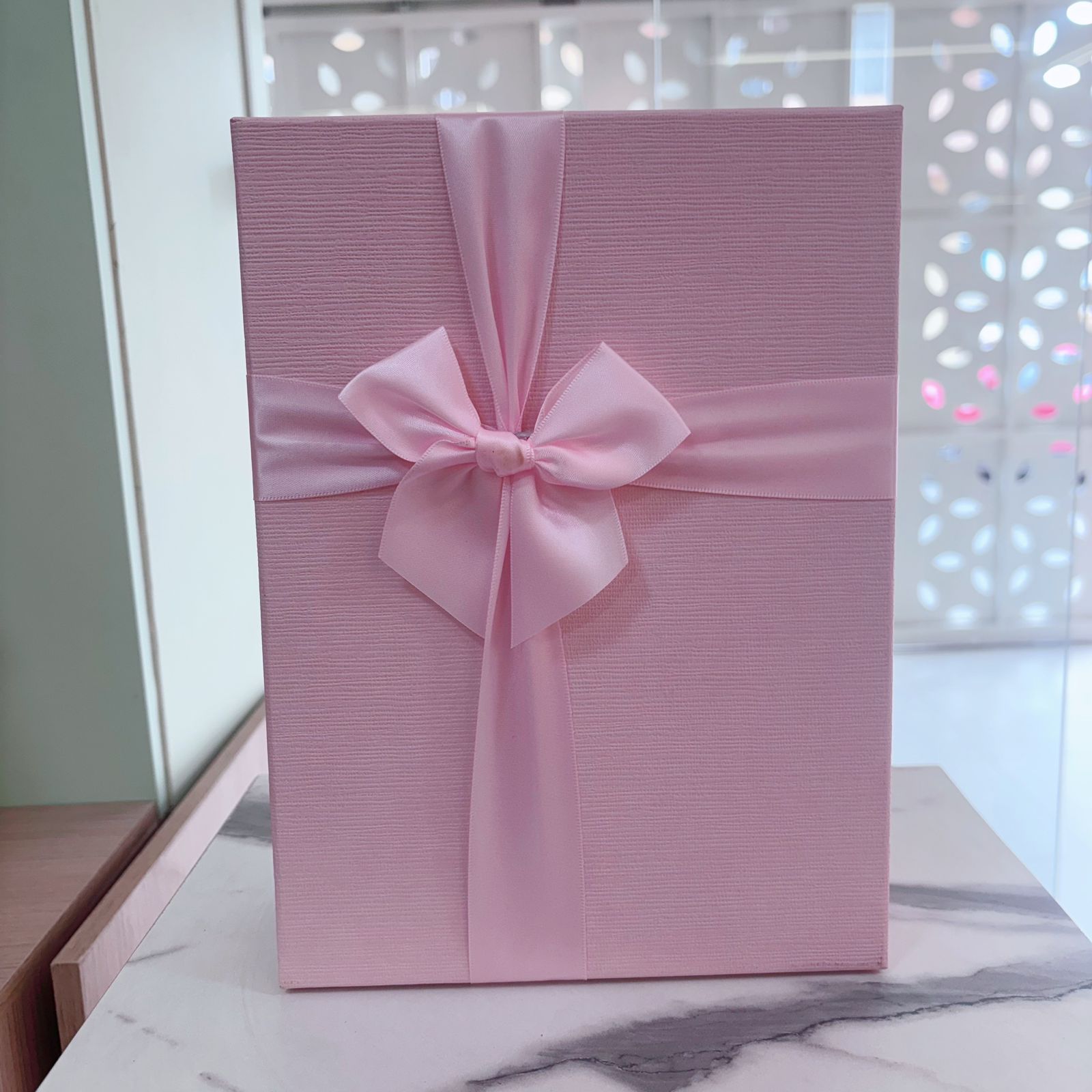 Caja rosada con cinta rosa mediana