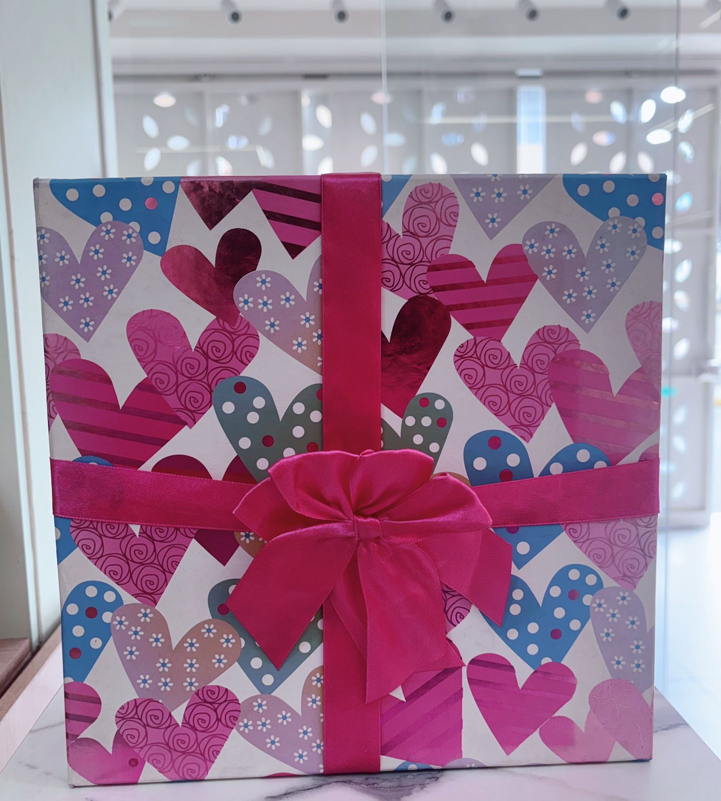Caja rosada con corazones mediana