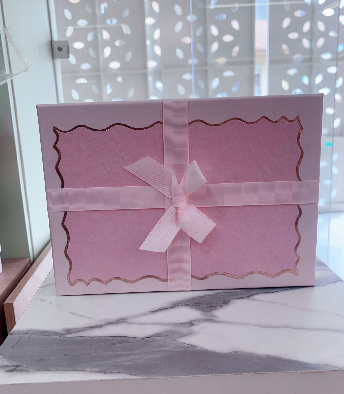 Caja rosada con lazo palrosa peq.