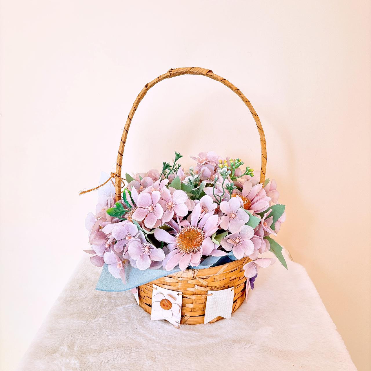 Canasta café flores moradas cantidad