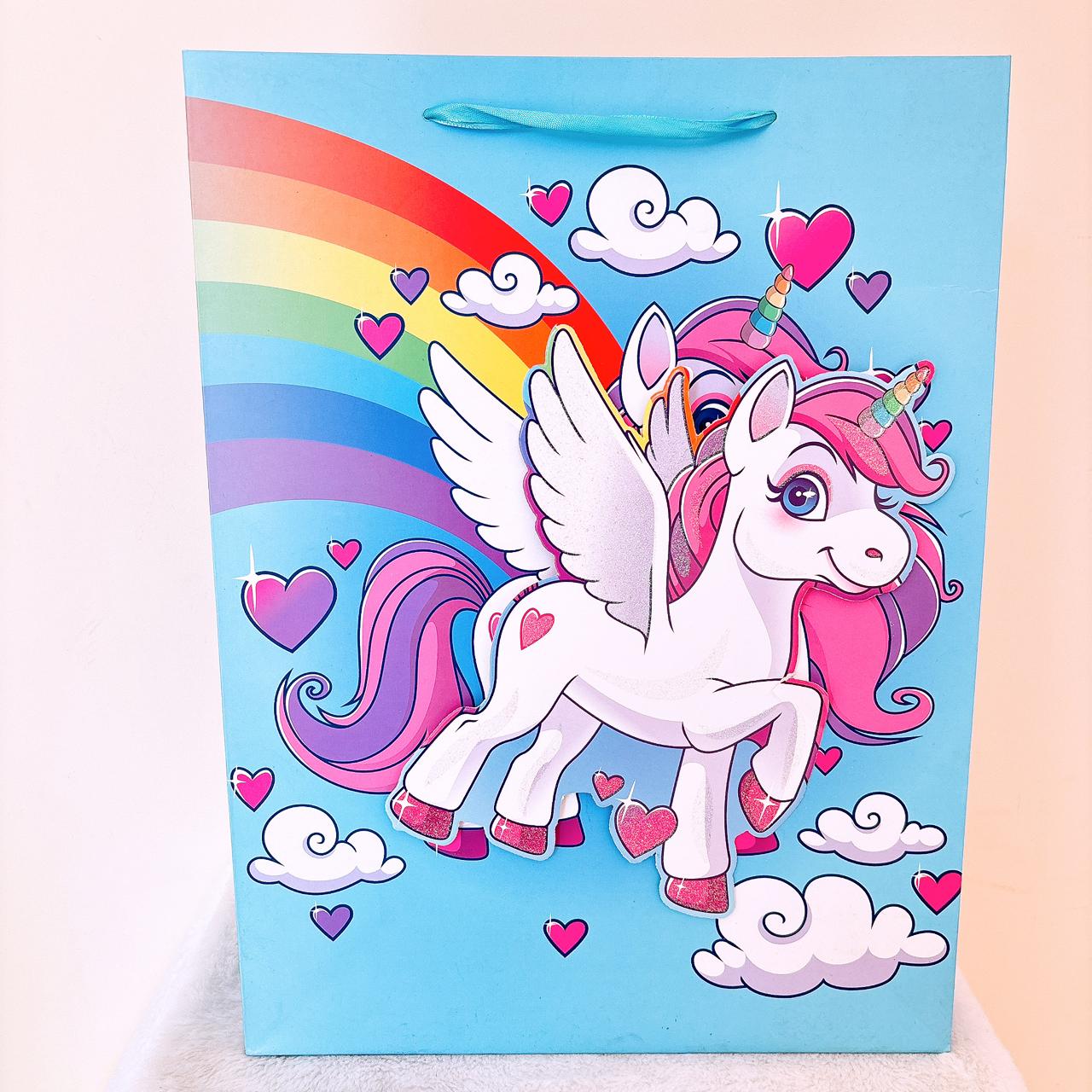 Funda celeste y unicornio blanco
