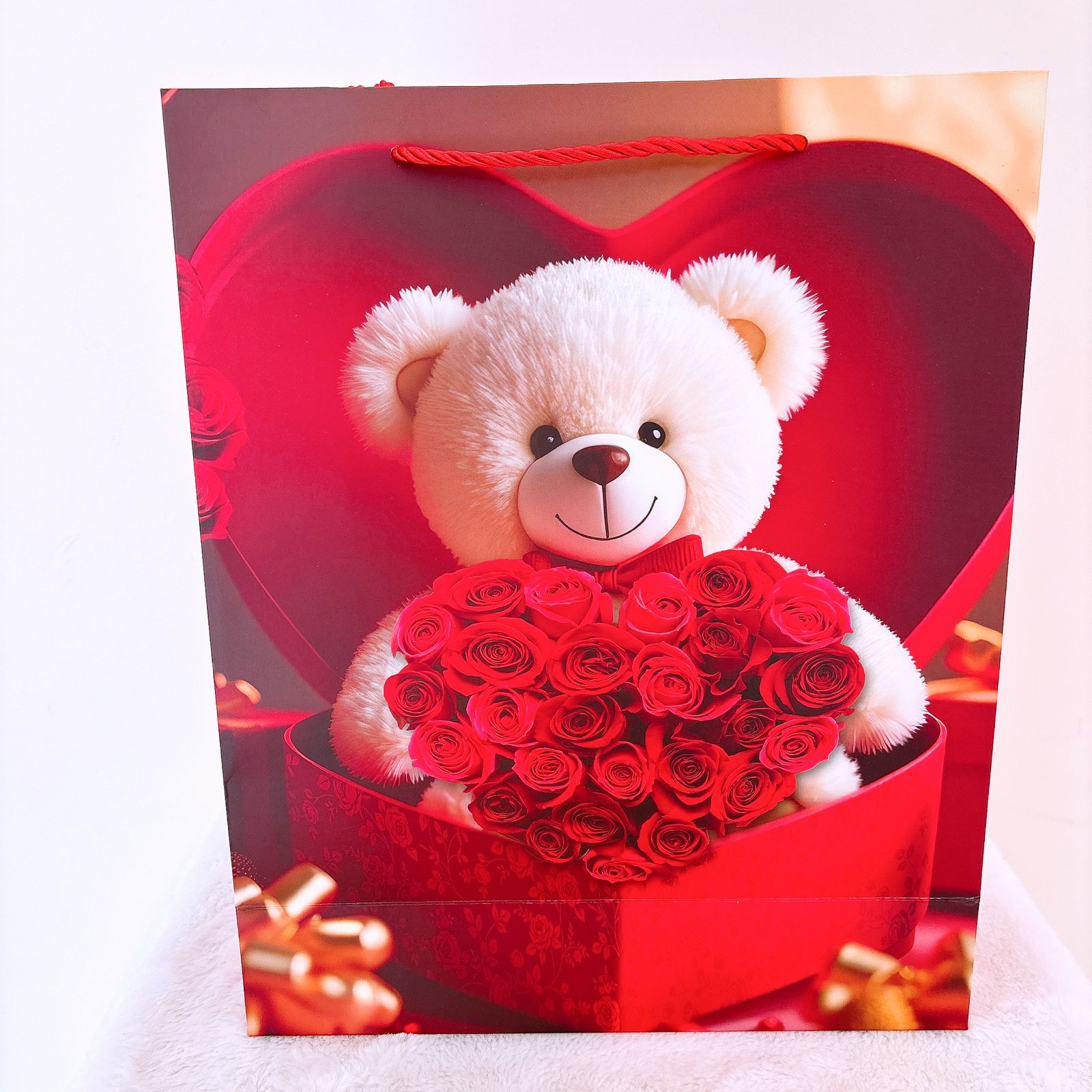 Funda roja con un osito cantidad