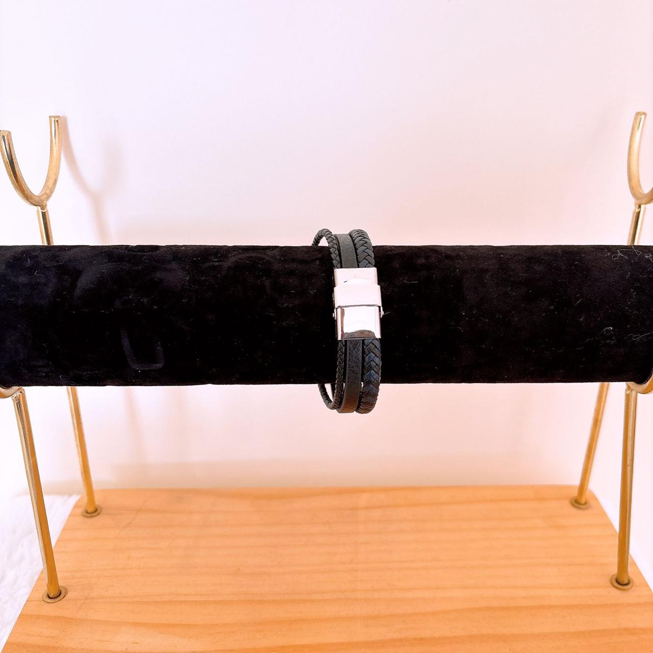 Pulsera negra con plateado