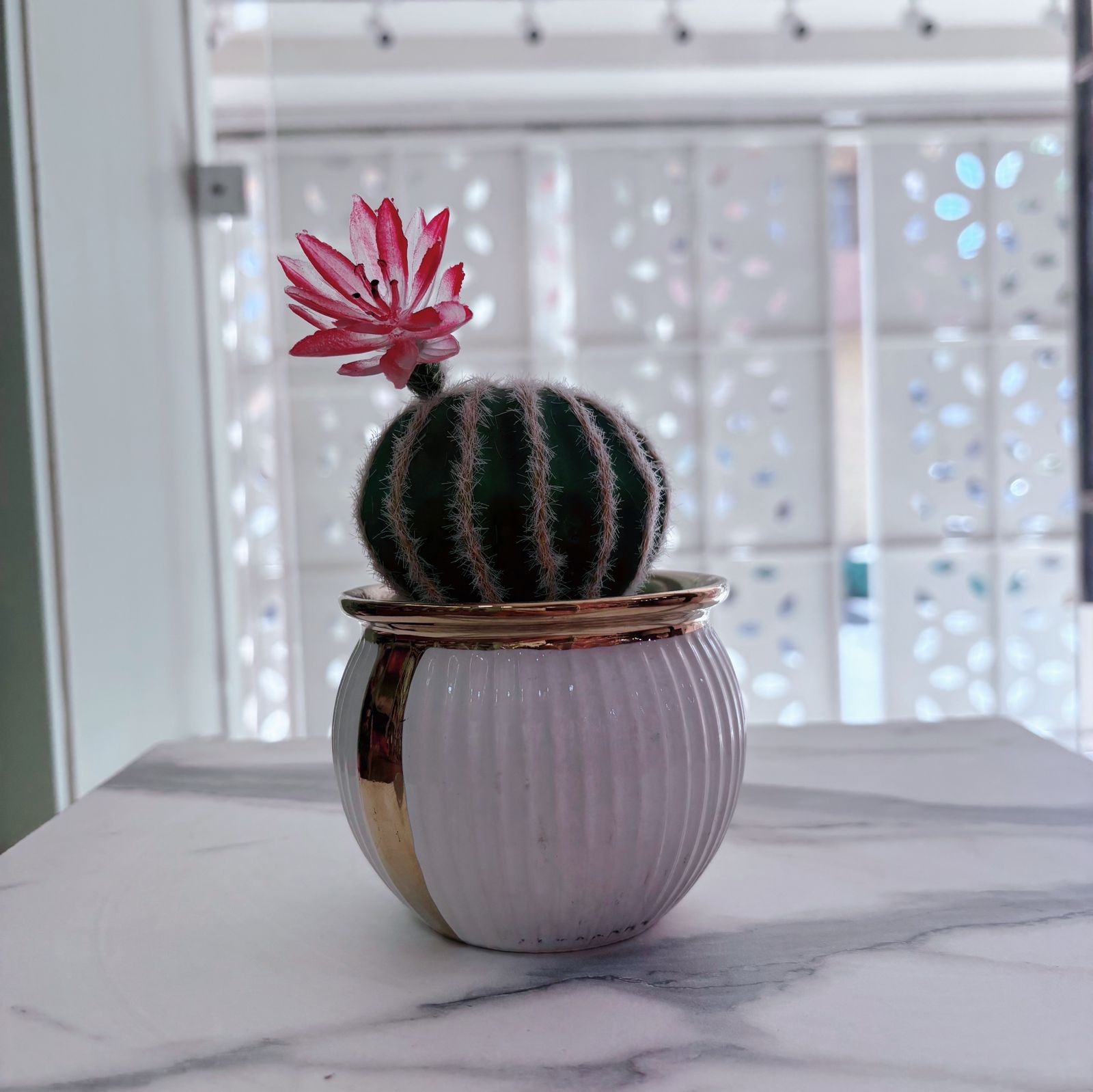 Suculenta con flor rosa artificial